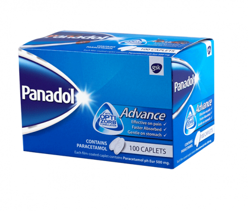 Panadol Advance 500 mg Tablets 100’s in Kenya. Each tablet contains Paracetamol 500 mg for fast, effective relief from headache, migraine, toothache, backache, cold/flu symptoms, and fever. Trusted Panadol brand available at Moan Pharmacy