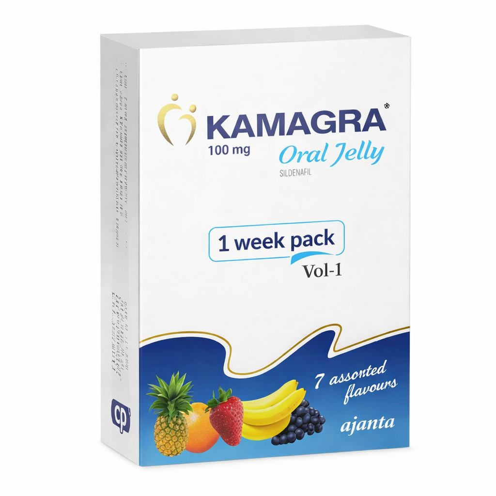 Kamagra Oral Jelly 100mg (7’s) is a fast-acting treatment for erectile dysfunction (ED), formulated with Sildenafil Citrate 100mg. Manufactured by Ajanta Pharma, this oral jelly offers a convenient alternative to tablets, dissolving quickly in the mouth for faster absorption.