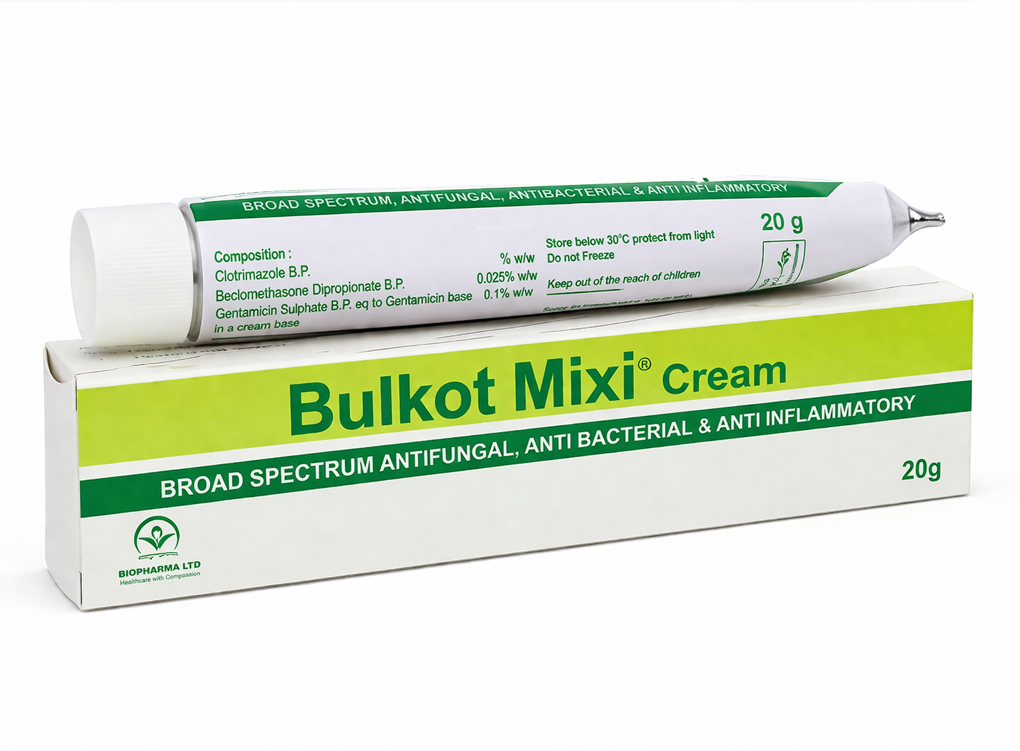 Soothe irritated and inflamed skin with Bulkot Mixi Cream 20g, a trusted topical treatment for rashes, itching, and minor skin inflammation. Its fast-acting formula penetrates deeply to provide relief from redness and discomfort, helping restore healthy skin. Perfect for home use, Bulkot Mixi Cream 20g offers effective, gentle care for sensitive and problem-prone skin.
