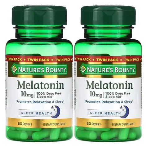 Nature’s Bounty Melatonin 10 mg Capsules provide a high‑strength dose of melatonin, a hormone naturally produced by the body to regulate sleep cycles. This supplement is ideal for adults experiencing occasional sleeplessness, jet lag, or shift work sleep disturbances. It promotes relaxation, helps you fall asleep faster, and supports restful sleep through the night — all in a non‑habit forming formula.