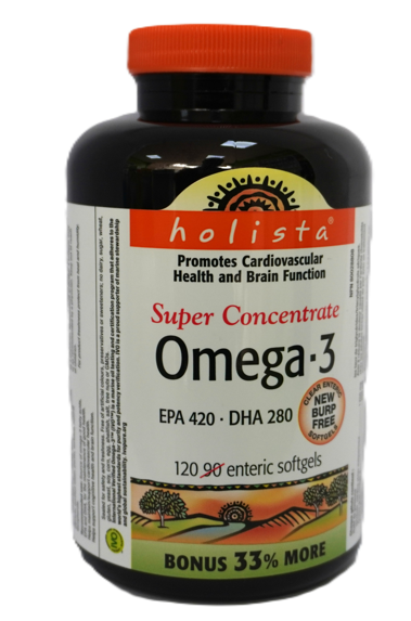 Holista Extra Strength Omega-3 with Wild Salmon Oil provides a highly purified source of beneficial fish oils sourced from wild salmon, anchovy, sardine and/or mackerel. 300 mg of EPA and 200 mg of DHA in this extra strength formula supports cardiovascular and cognitive health while helping to reduce serum triglycerides.